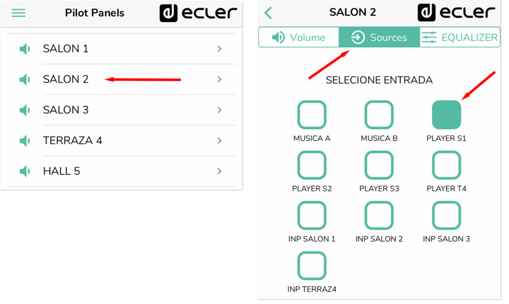 - Pulsar el botón PLAYER S1 (Reproducción S1: Salón 1)